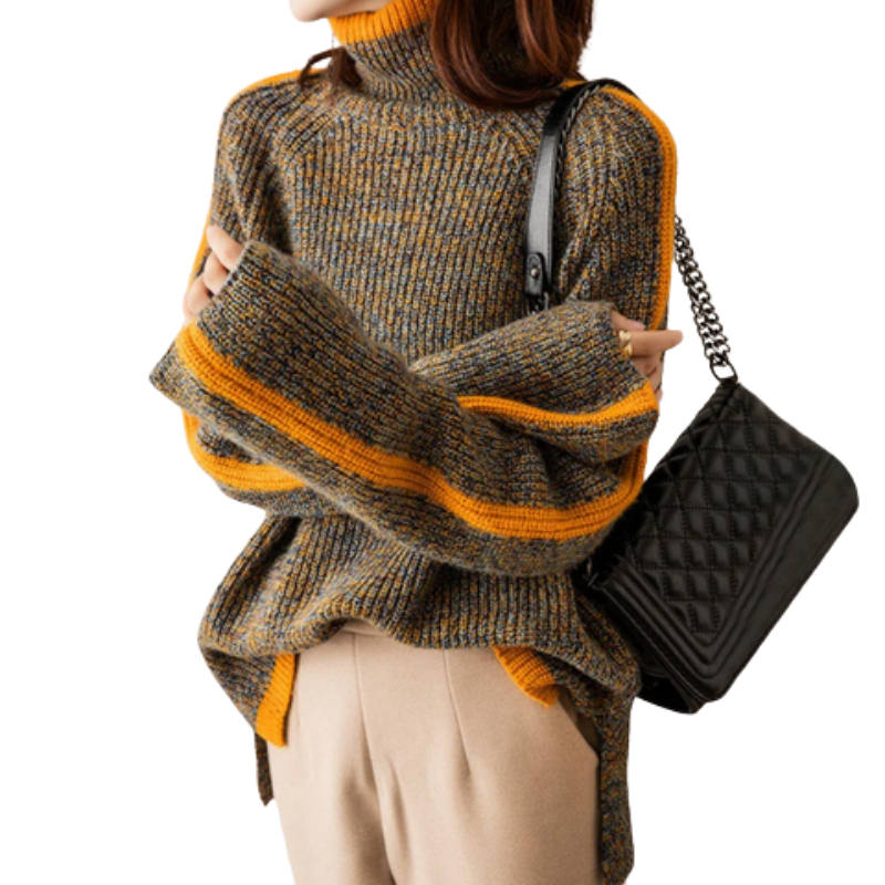 Gebreide pullover met opstaande kraag en geribde randen