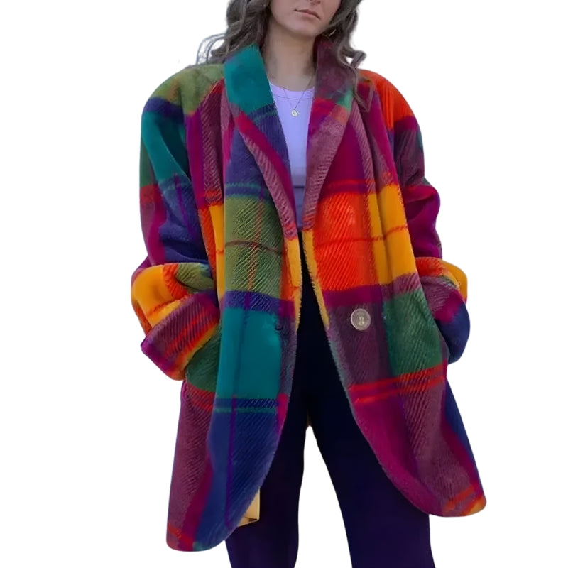 Damesjas met lange mouwen opgerolde mouwen en een gekleurd ruitpatroon