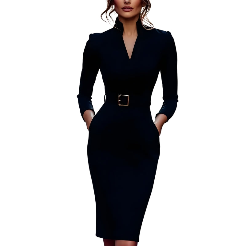 Damesjurk voor zakelijke gelegenheden met riem en V-hals
