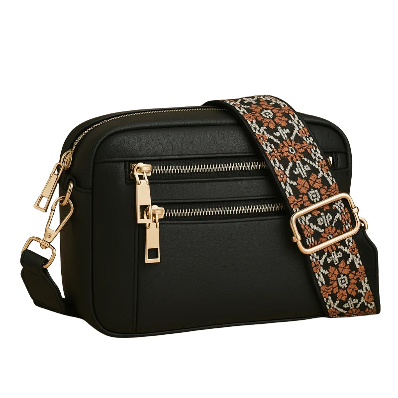 Damesschoudertas met dubbele ritssluiting en verstelbare schouderband