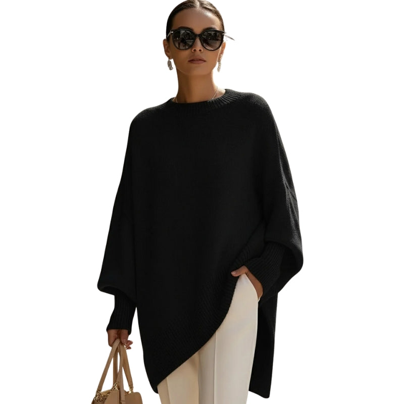 Deze gebreide trui heeft een ronde halsuitsnijding met een ribbelboord en een extra ruime pasvorm. De lange mouwen zijn voorzien van ribboorden en de asymmetrische zoom heeft langere zijden.
