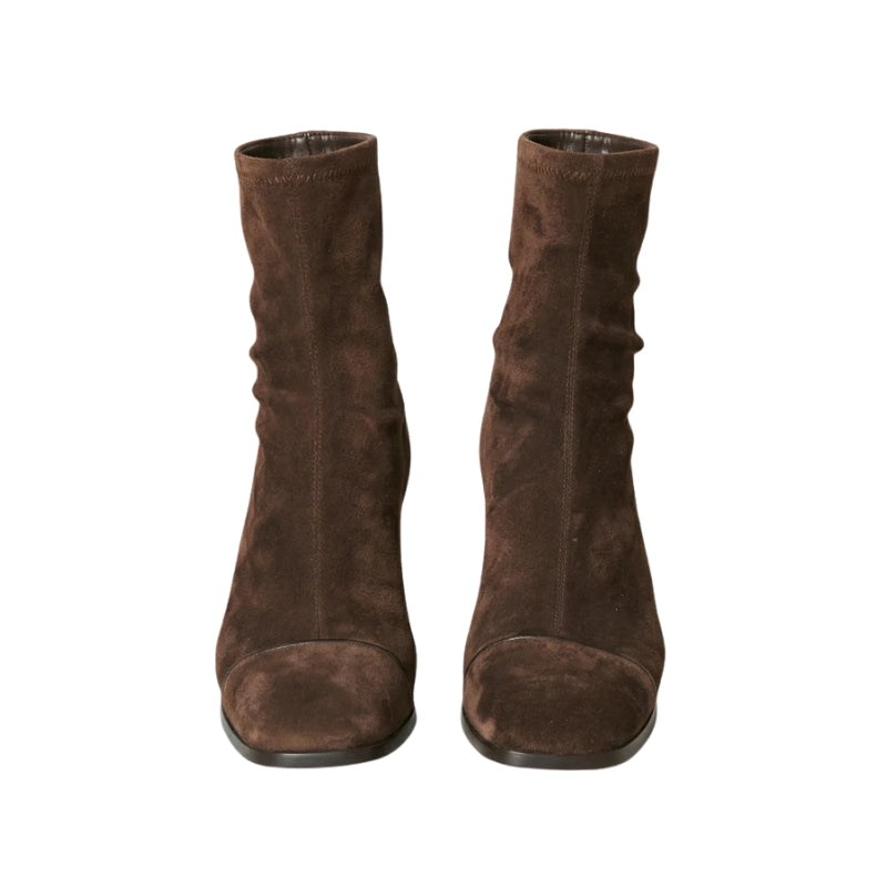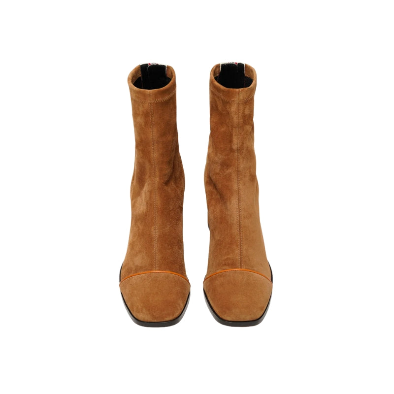 Deze korte laarsjes vallen net boven de enkel en hebben een vierkante, afgeronde neus. De hak is een blokhak met een middelhoge hoogte. De laarsjes zijn voorzien van een ritssluiting aan de zijkant om ze gemakkelijk aan en uit te trekken.