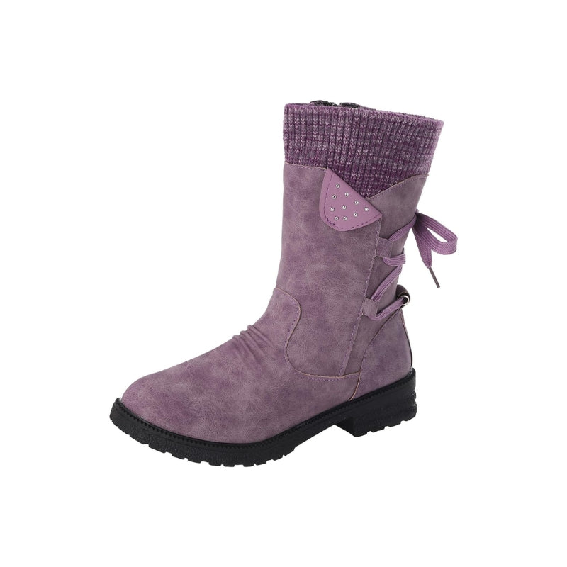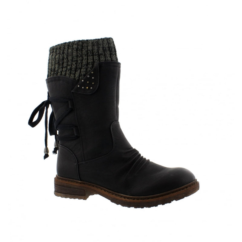 Dames laarzen met gebreide boord en vetersluiting