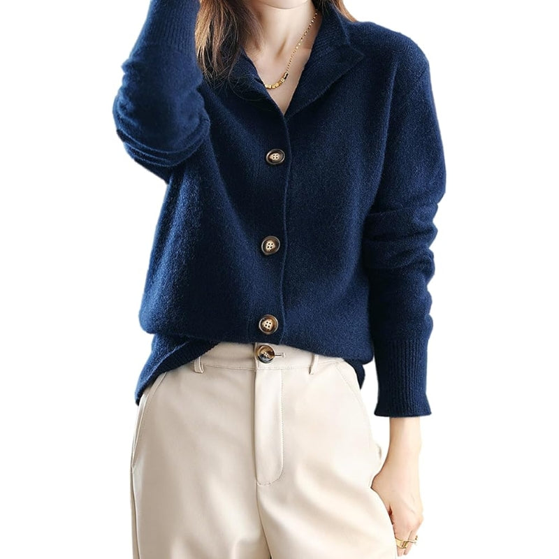 Gebreid damesvest met kraag en knoopsluiting aan de voorkant