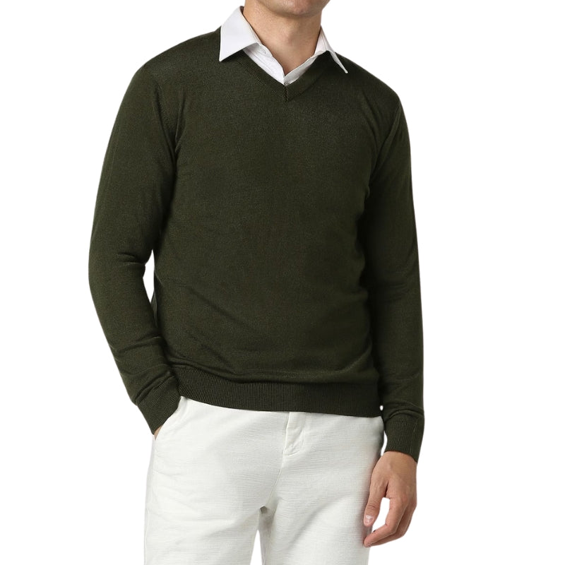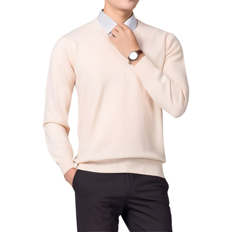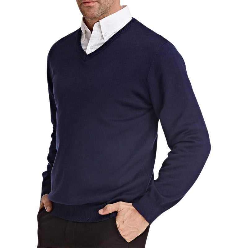 Heren trui met ronde hals en geribbelde boorden