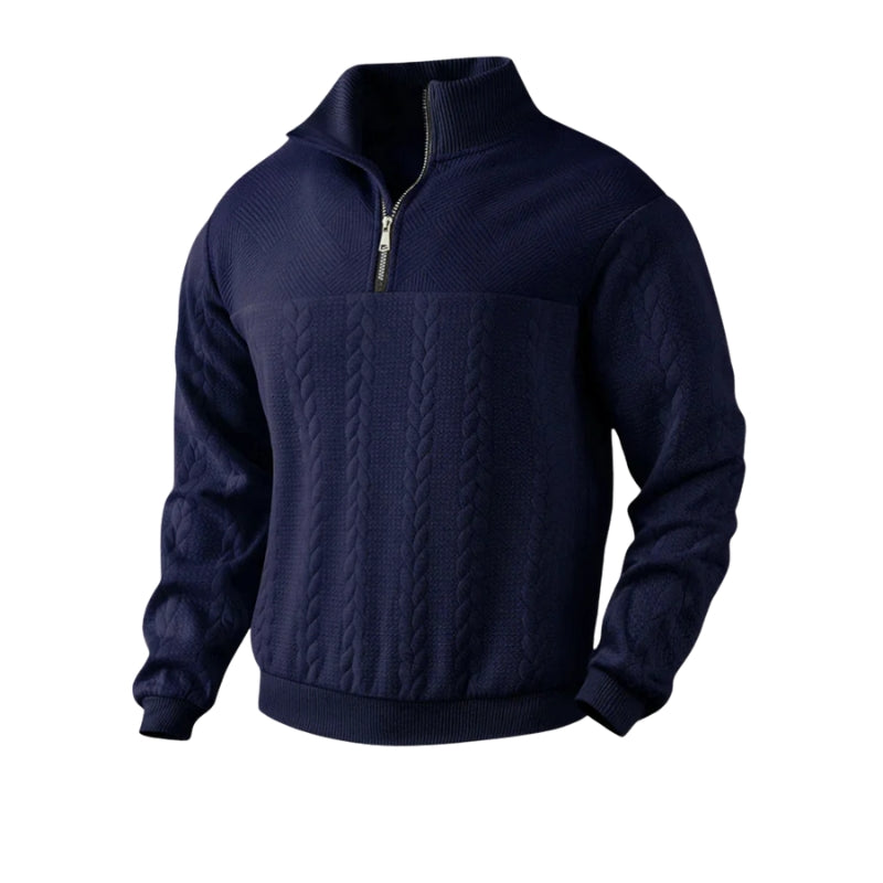 Herentrui met halve ritssluiting en gecombineerde breisels