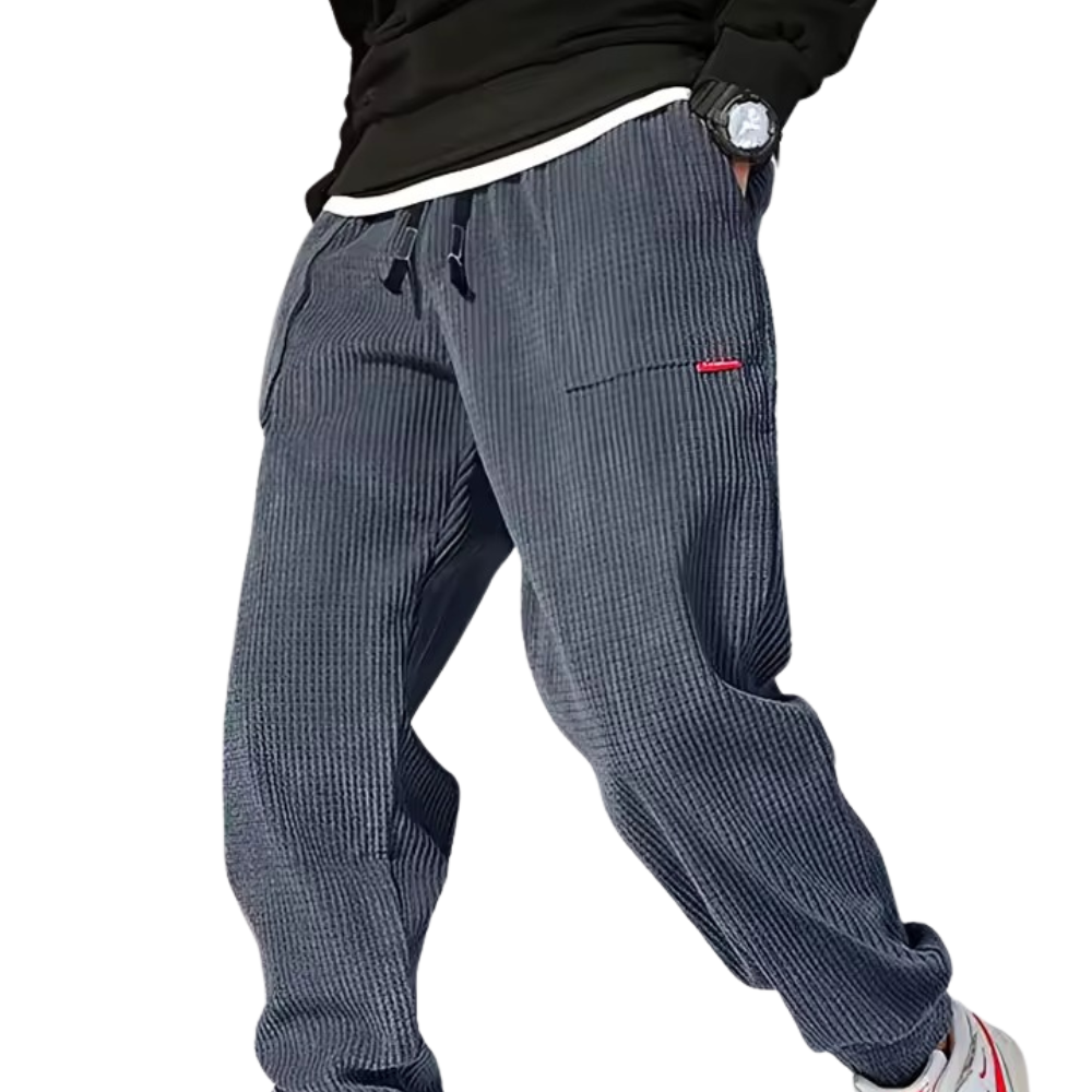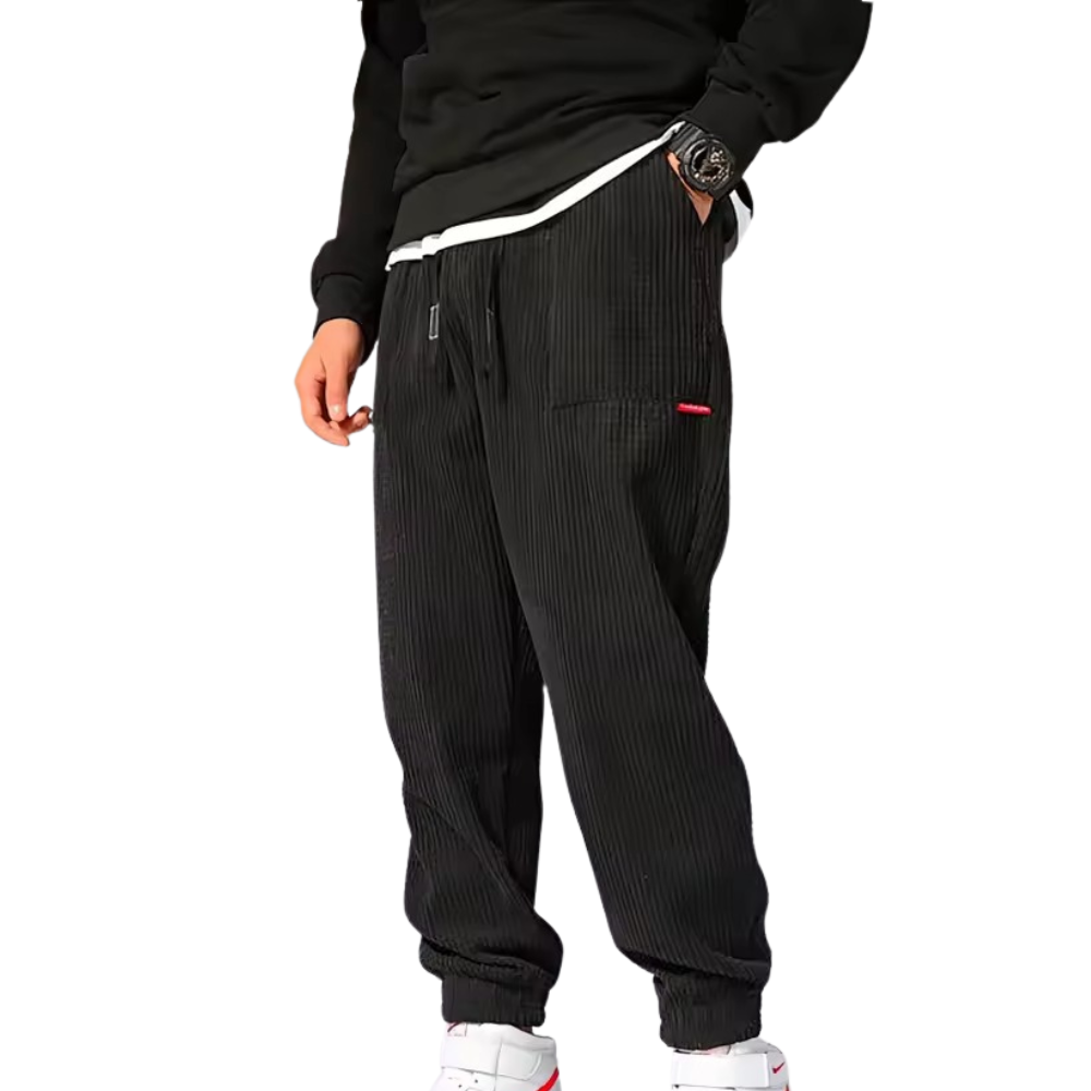 Deze corduroy cargobroek voor heren heeft een losse pasvorm en elastische enkelboorden, wat zorgt voor een moderne stedelijke uitstraling. De geribbelde corduroystof geeft structuur, terwijl de cargozakken extra opbergruimte bieden. Ideaal voor ontspannen dagen, reizen of een uitstapje in de stad.