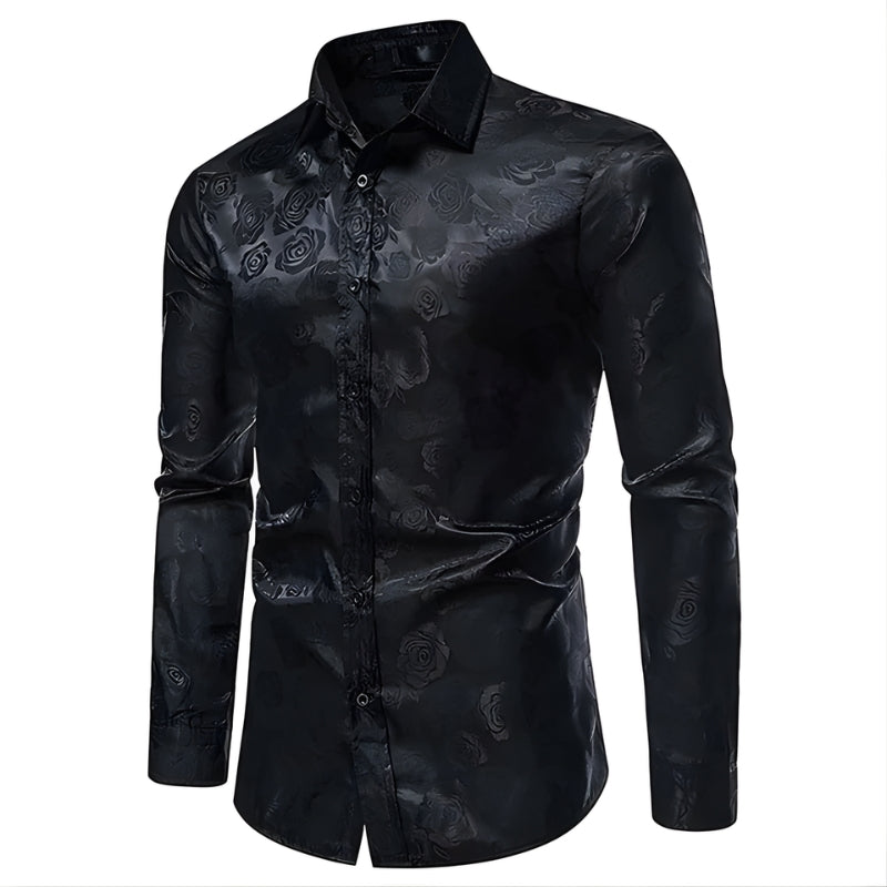 Herenoverhemd met geweven rozenpatroon en lange mouwen