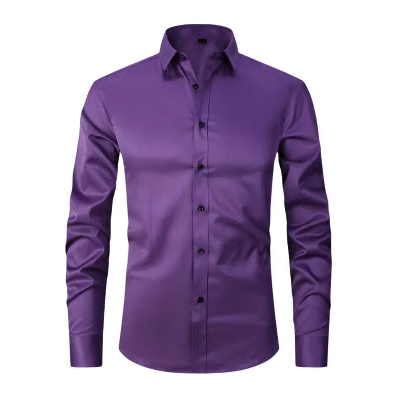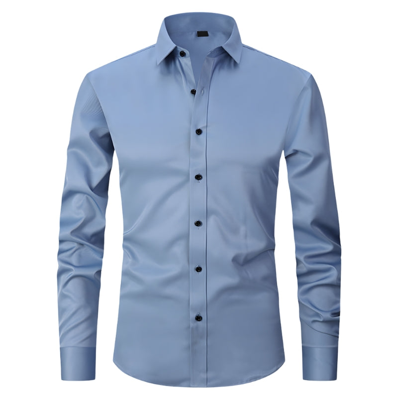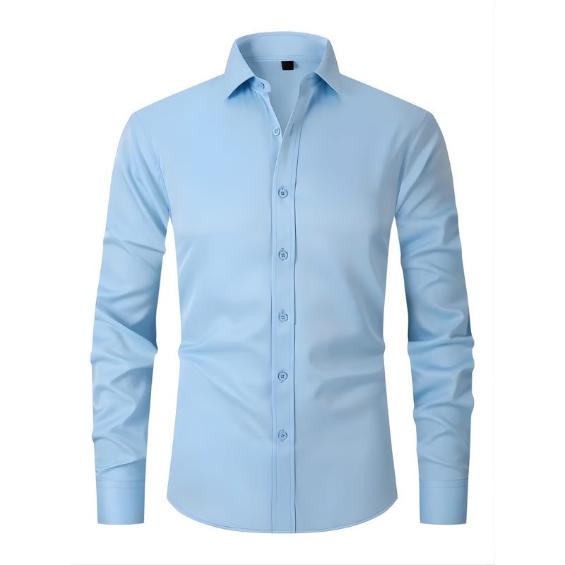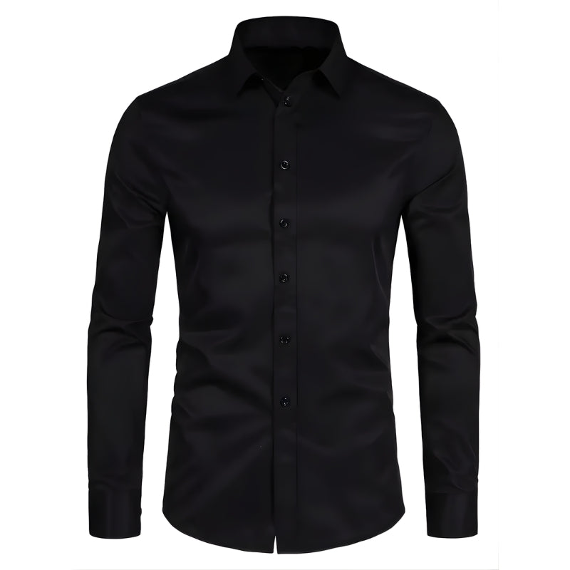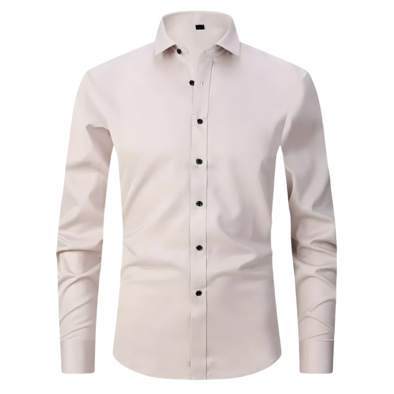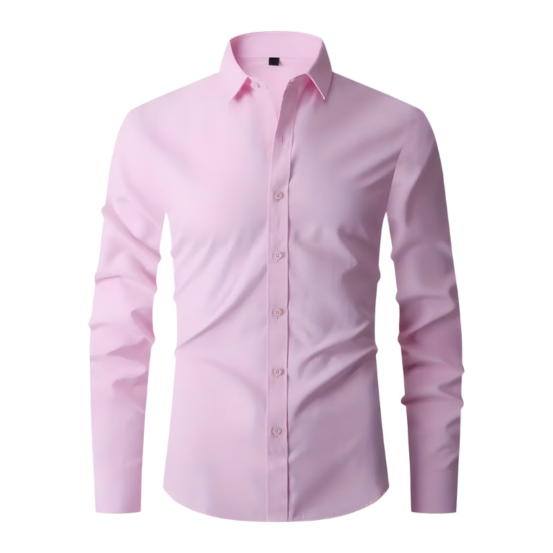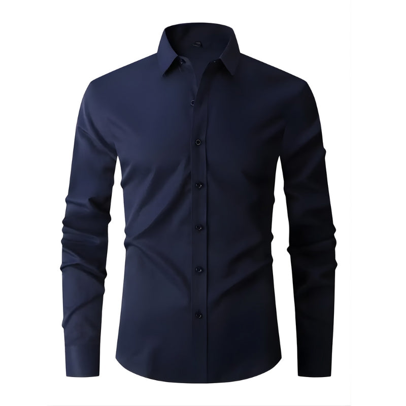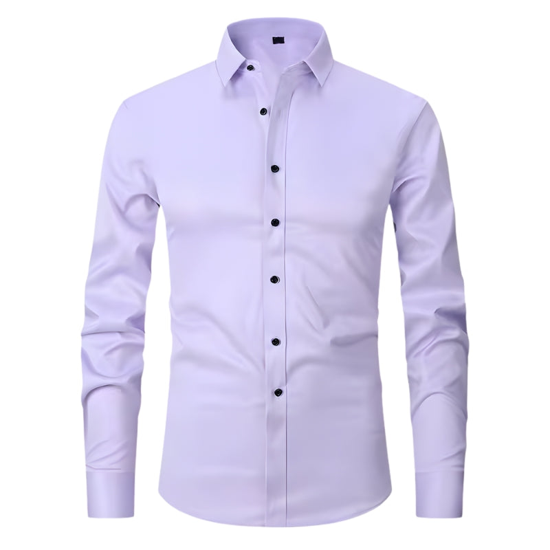Dit overhemd heeft een puntkraag en een doorlopende knoopsluiting aan de voorkant met contrasterende knopen. Het overhemd is voorzien van lange mouwen met manchetten die met één knoop worden gesloten. De getailleerde snit volgt de lijnen van het lichaam en het overhemd kan in de broek of los gedragen worden.