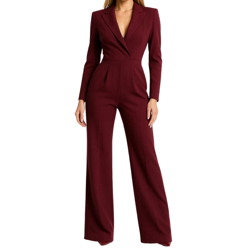 Damesjumpsuit met smokingkraag en wijde pijpen