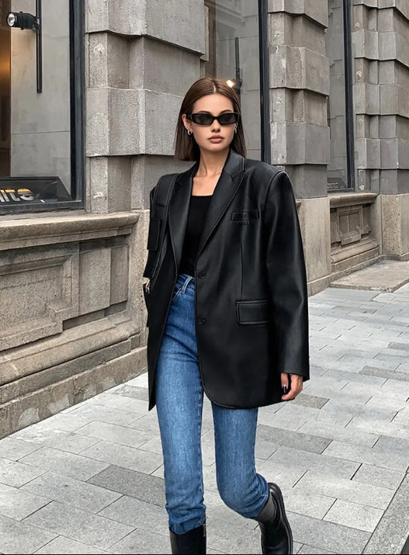Dames blazer te groot met revers knoopsluiting