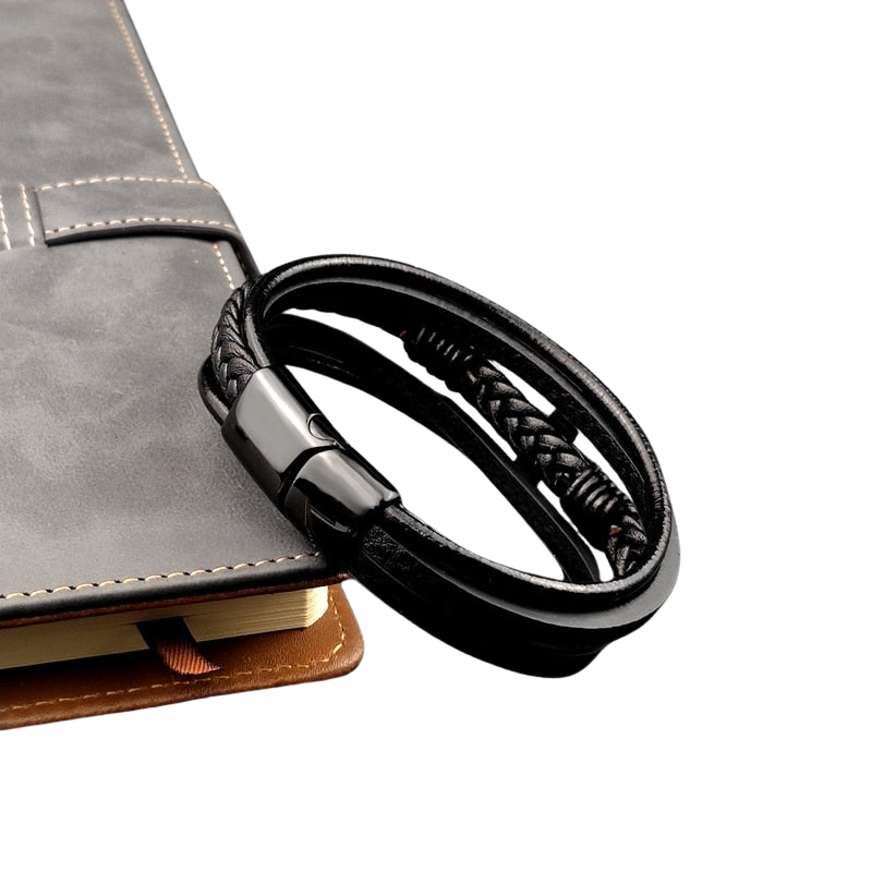 Deze armband voor heren heeft een zwart kruiselement verwerkt in een stevig bandmodel. De sluiting houdt de armband goed op zijn plaats tijdens het dragen. Het oppervlak heeft een matte uitstraling zonder overbodige versieringen.