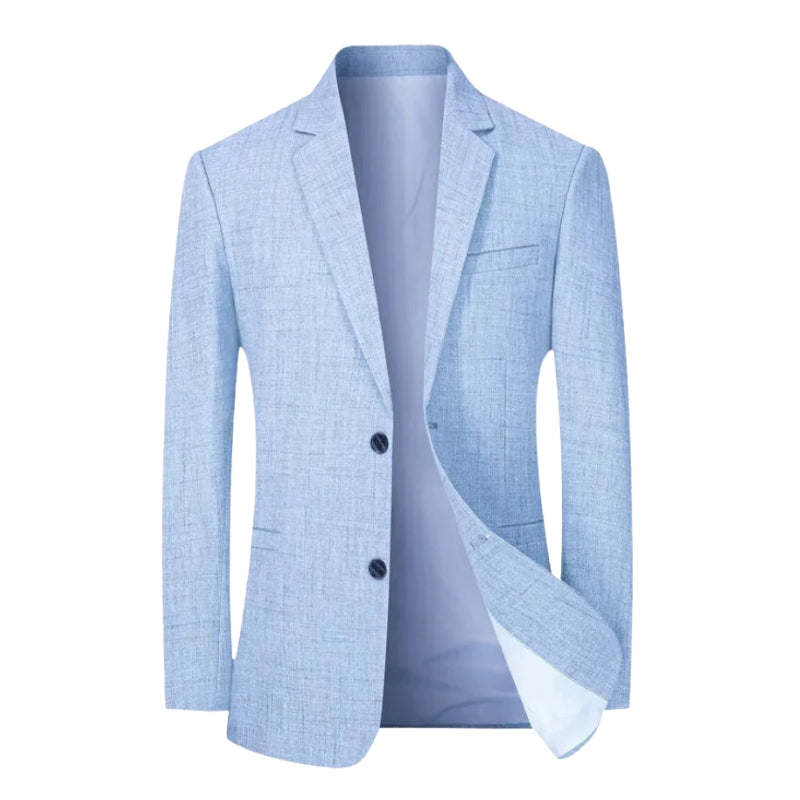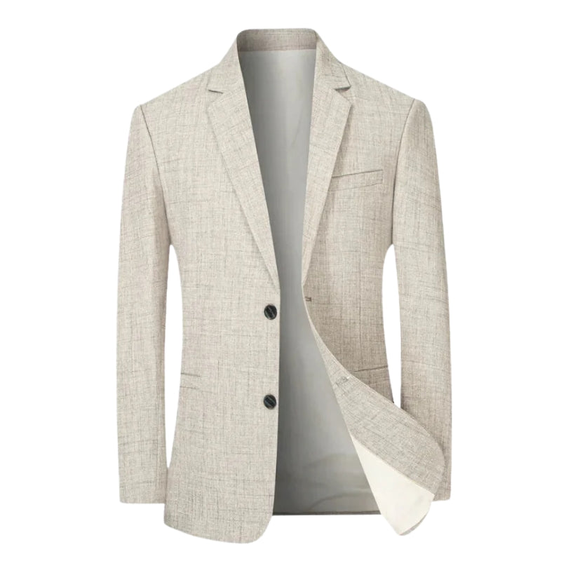 Dit colbert heeft een kraagomslag met inkeping en sluit met twee knopen aan de voorkant. Het colbert heeft een borstzak aan de linkerkant en twee zakken aan de onderzijde. De stof heeft een geweven weefsel met een natuurlijke uitstraling.