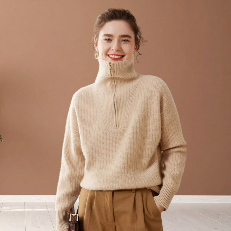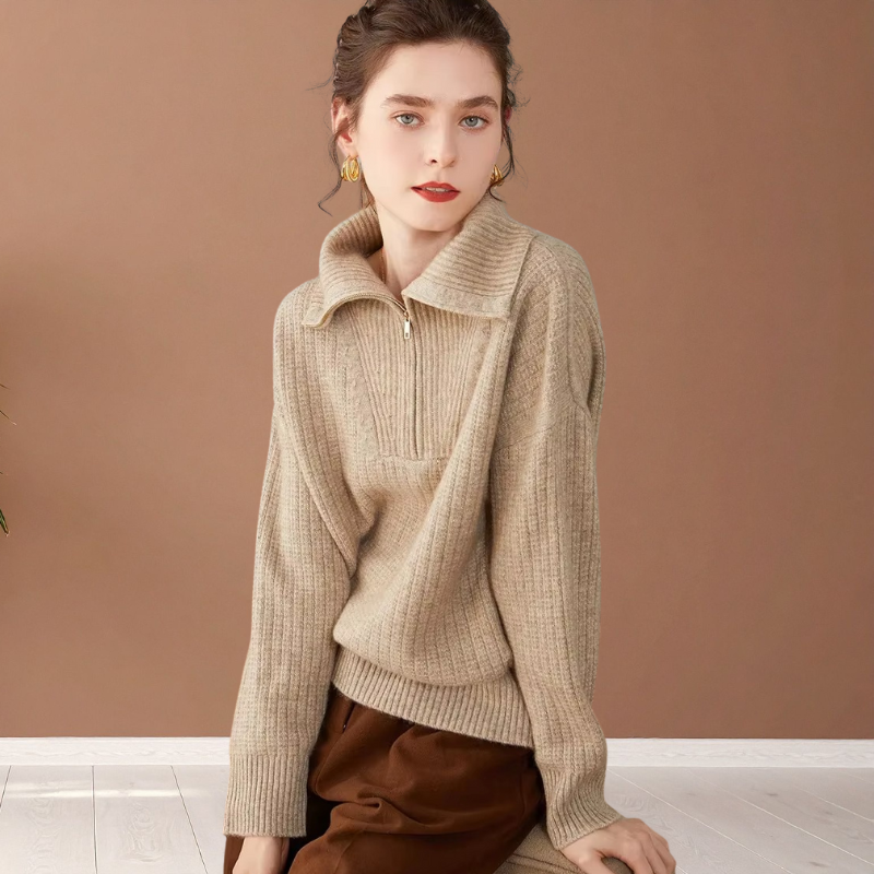 Dames trui met halve rits en lange mouwen voor winter en lente