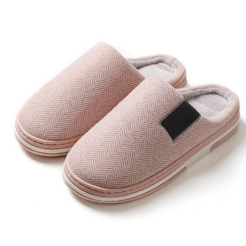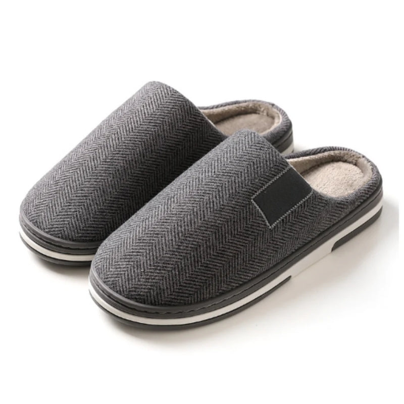 Deze pantoffels hebben een klassiek visgraatpatroon en een gesloten neus voor extra bedekking. De binnenkant is licht gevoerd voor aangenaam draagcomfort en maakt ze eenvoudig aan en uit te trekken. Een evenwichtige combinatie van functionaliteit en ingetogen stijl, ideaal voor elk seizoen.