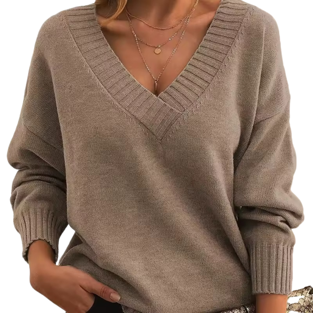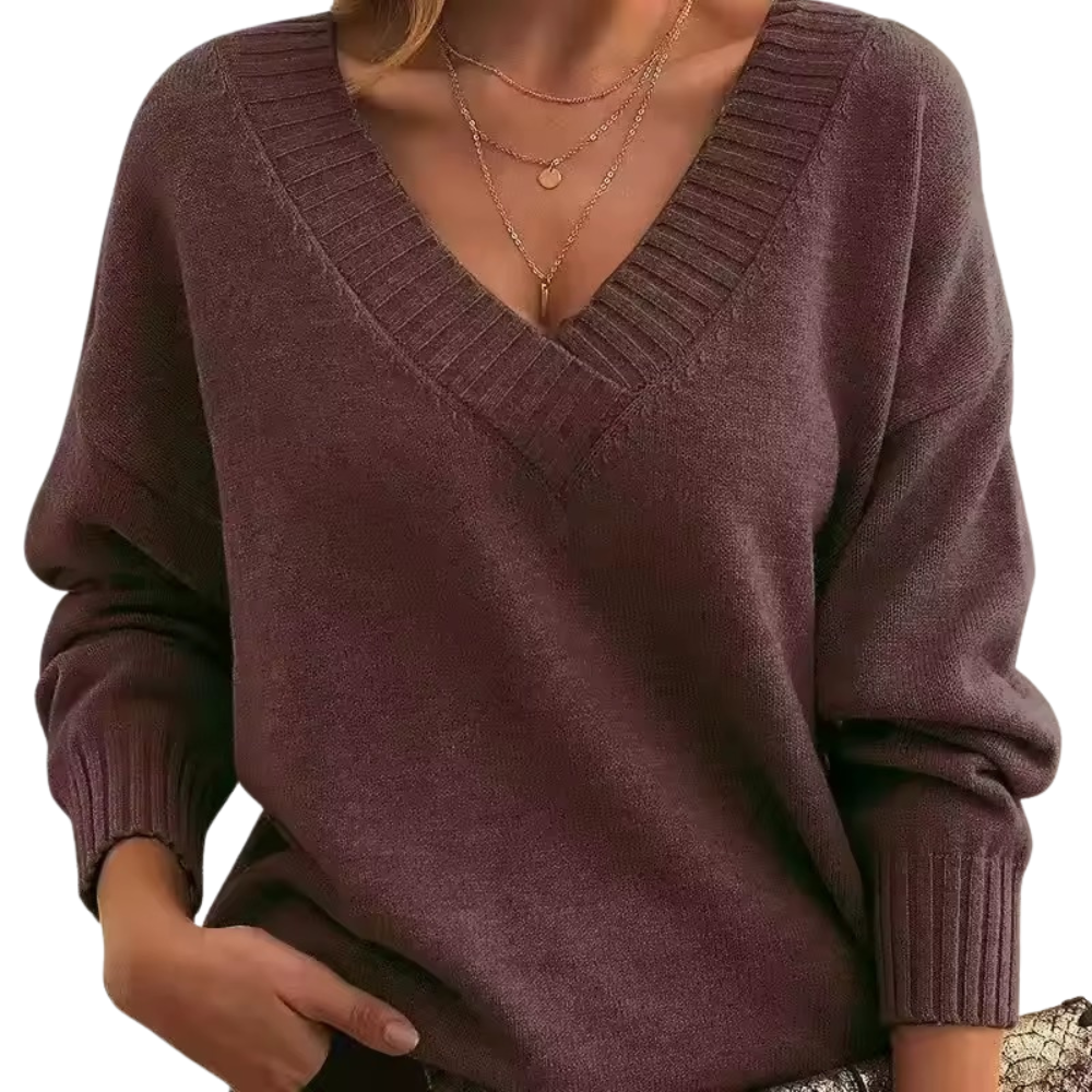 Ruimvallende V-hals gebreide trui voor dames met lange mouwen