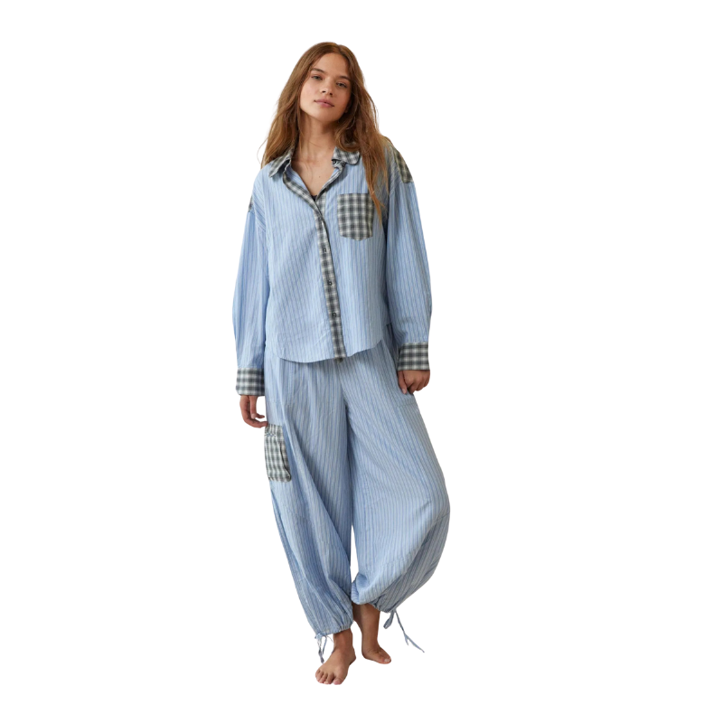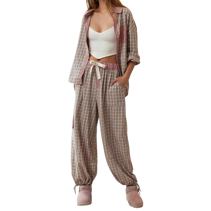 Tweedelige slaapset met top en broek voor dagelijks gebruik.
